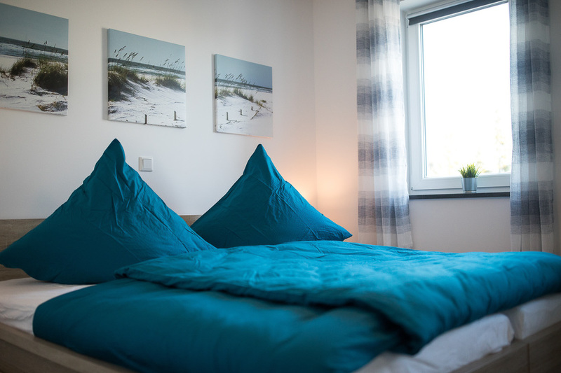 Die Ferienwohnung ist mit 2 Schlafzimmer mit Doppelbett (180 x 200 cm) mit TV und Duschbad ausgestattet.