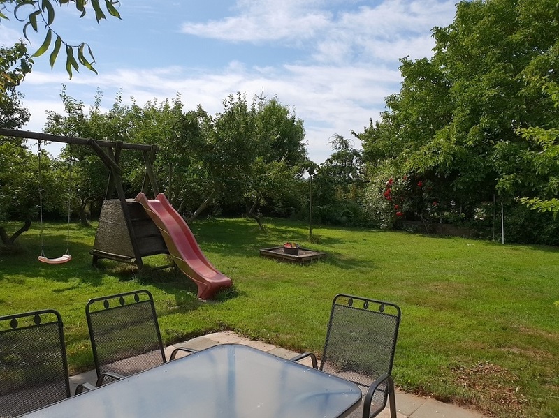 Personen (Aufbettung möglich) Sitzecke mit Grill im Garten, PKW-Stellplatz auf dem
