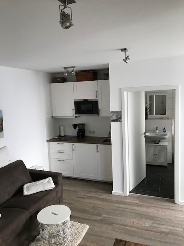 Sie ist modern eingerichtet. Ein charmantes und hochwertiges Konzept verwandelt den Wohnraum zur Nacht in ein komfortables Schlafzimmer. Die offene Küchenzeile ist sehr gut ausgestattet, das großzügige Bad besitzt u.a. eine bodengleiche Dusche mit "Regendusche". Kostenloses W-LAN, Flachbild-TV und eine Auswahl an Büchern, CD´s, Spielen stehen zur Unterhaltung zur Verfügung. Die Wohnung und die Terrasse sind für 2 Erwachsene (+1 Kind) möbliert und ausgestattet. (Terrassenmöbel nicht im Winter). Ein PKW-Stellplatz befindet sich direkt am Haus. Gesamtfläche ca. 32 qm.