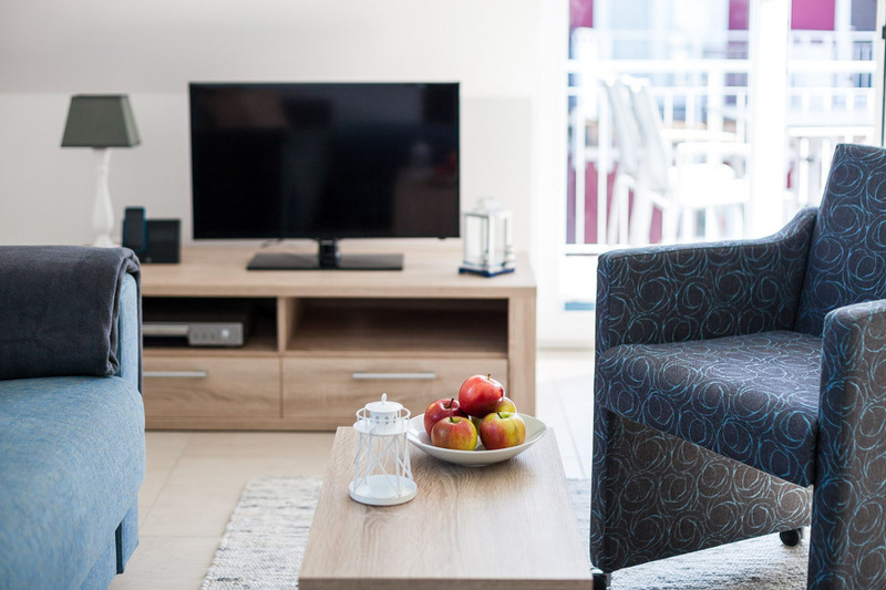 In dem mit einer Fußbodenheizung ausgestatteten Apartment finden Sie Platz für bis zu 6 Personen. Unsere Wohnung verfügt über einen offenen Wohn- und Essbereich mit Balkon in der ersten Ebene. Ebendfalls hier finden Sie das Schlafzimmer mit Doppelbett und das Bad.